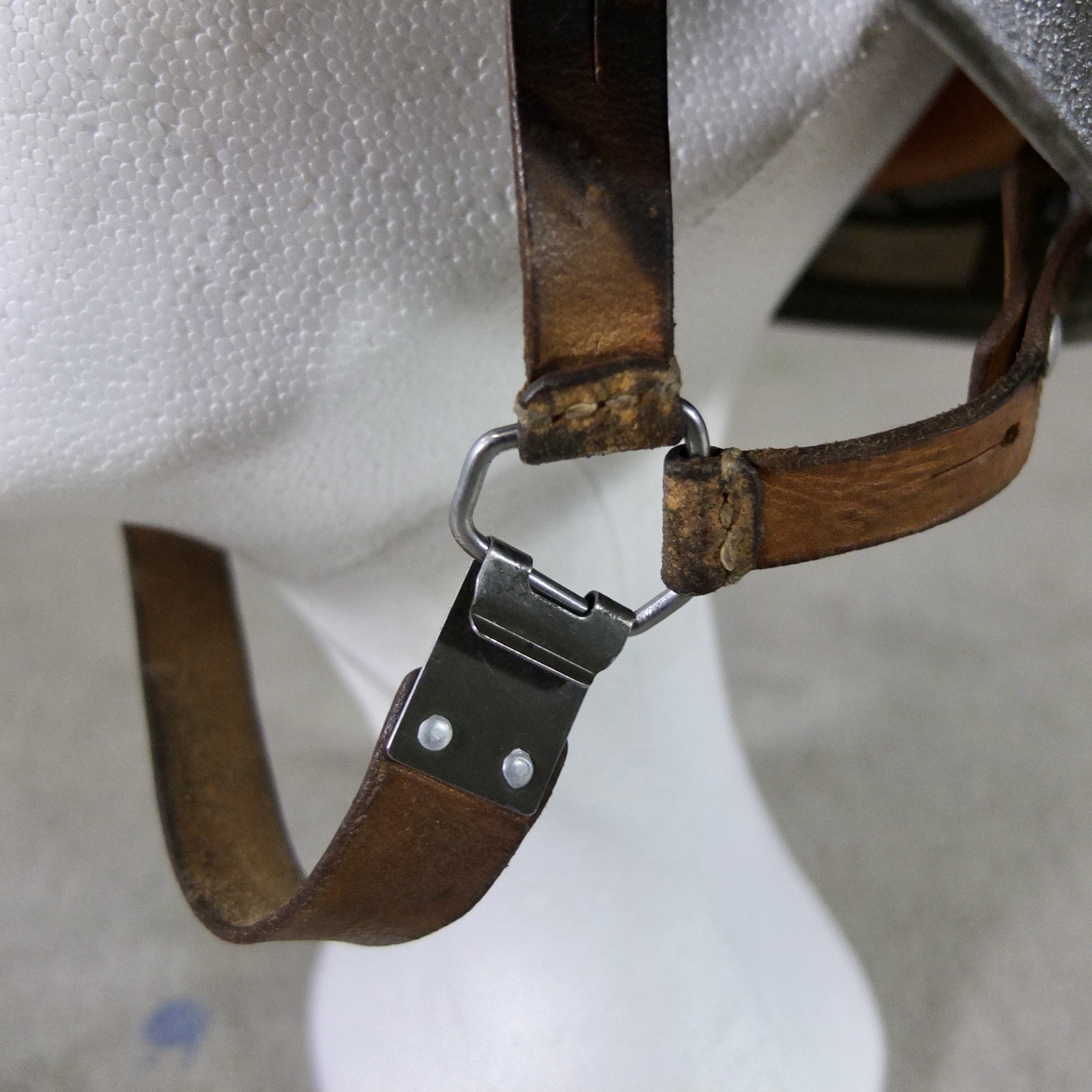 Leather chin strap with four attachment points.