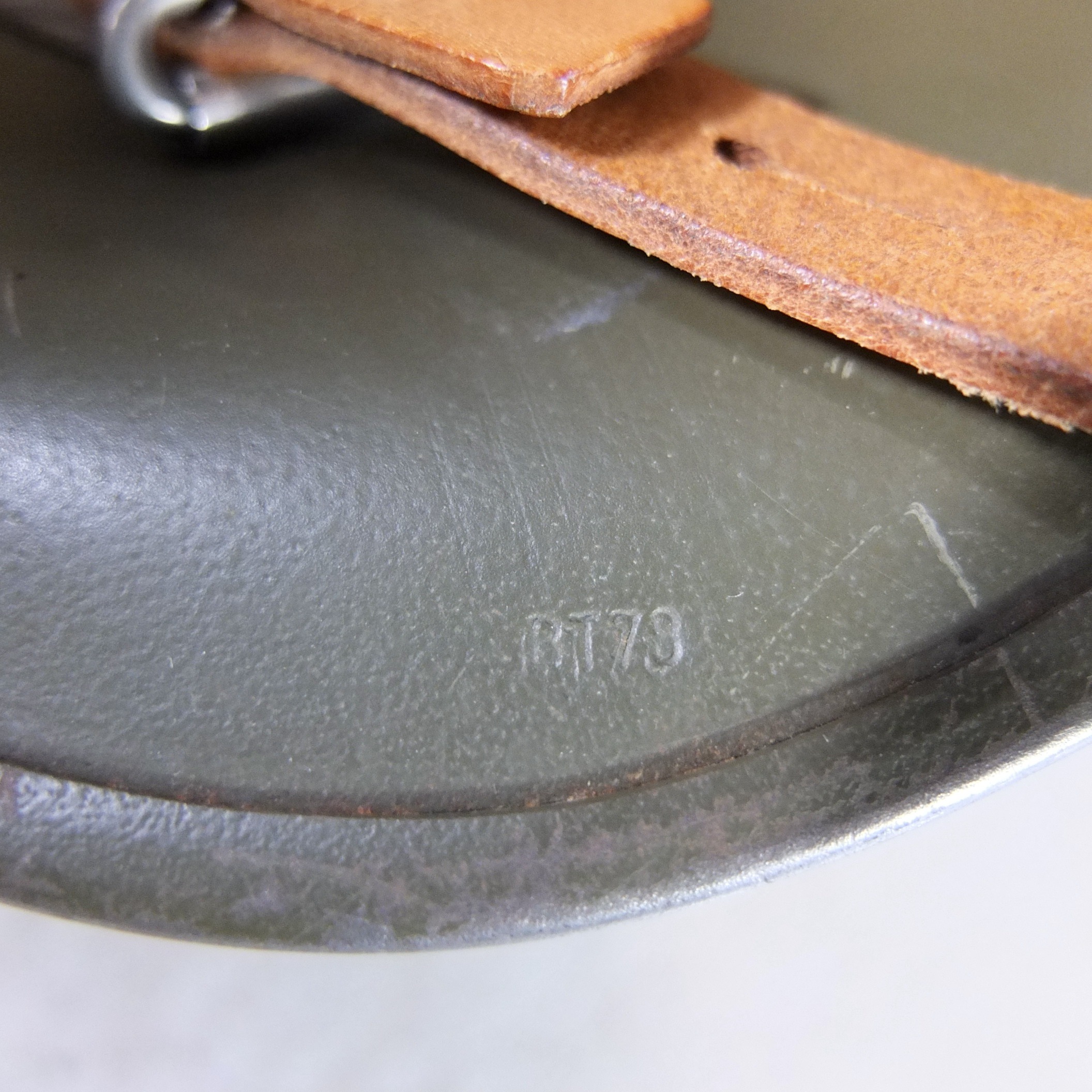 Lining attached to the shell with four rivets. Suspension system with four leather pads.
