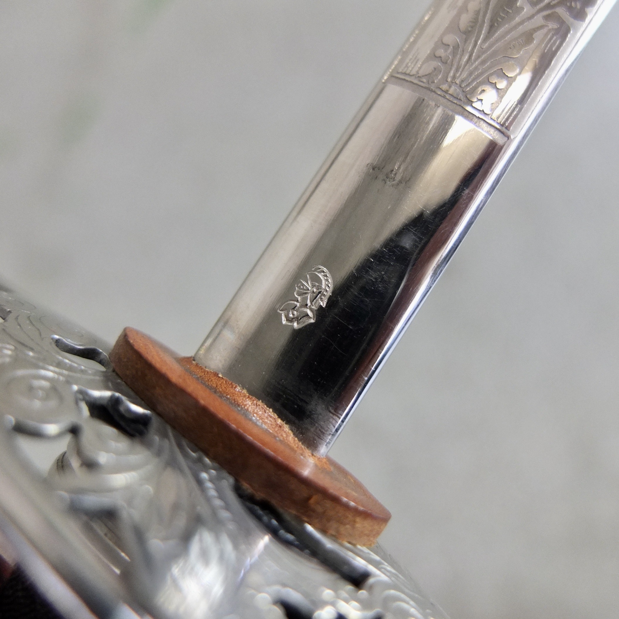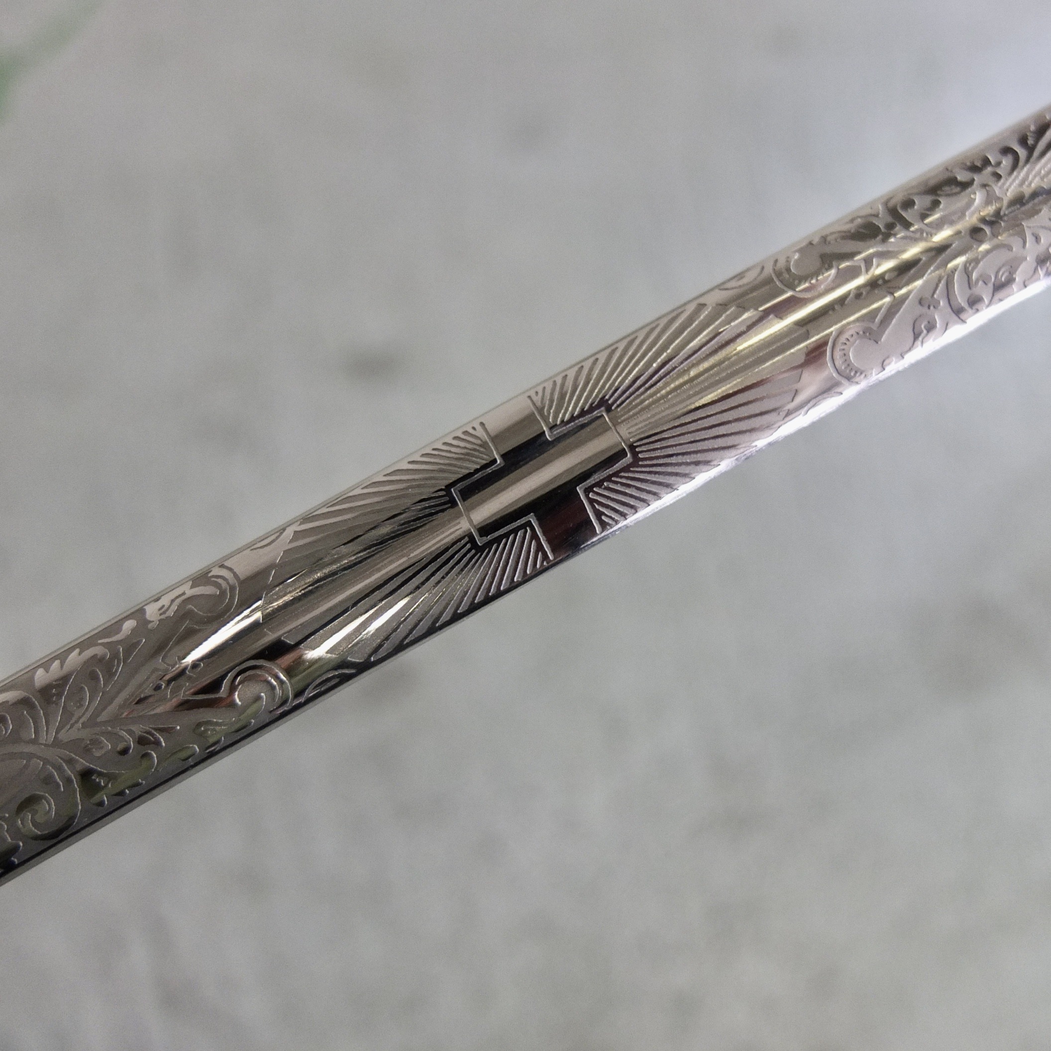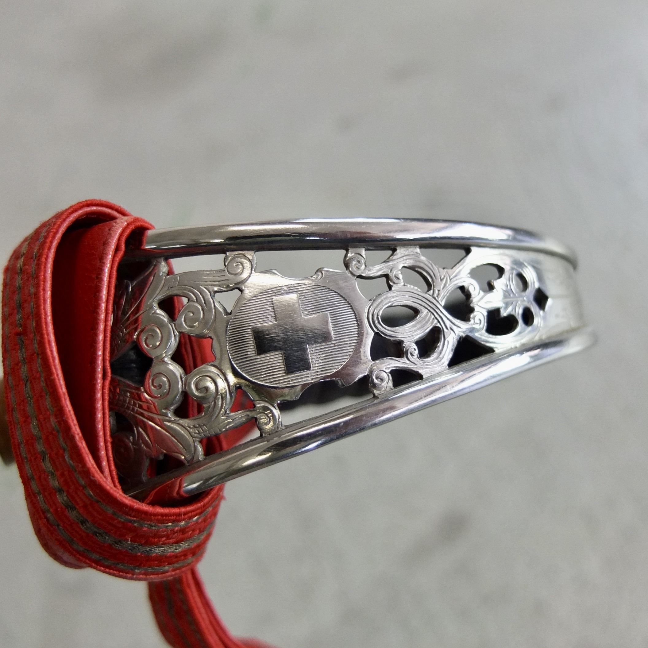 Blade richly engraved with floral motifs and the Swiss cross.